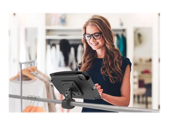 Montage sur rails de 12,7 mm (0,5 ") Ø à 38 mm (1,5") Ø, pivotement d'écran à 360 ° et basculement d'écran à 125 °, compatible avec le verrou de câble, montage compatible VESA 100 mm x 100 mm et 75 mm x 75 mm.