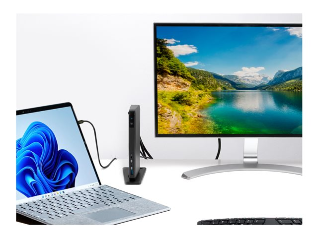 Si vous possédez une Surface équipée d'USB-C et que vous avez besoin de travailler sur plusieurs écrans, la SD4845P est la station d'accueil qu'il vous faut. Un unique câble USB-C vous permet de connecter en Plug & Play jusqu'à trois moniteurs 1080p sans aucun pilote, dongle ou adaptateur. Ce même câble vous permet de recharger votre ordinateur portable avec une alimentation PD 85 W, de connecter votre souris, votre clavier et vos autres accessoires USB. Grâce à une grande vitesse de transfert de données de 10 Gbits/s, votre productivité ne connaîtra jamais de baisse de régime. Consultez le tableau de compatibilité pour voir les appareils pris en charge.