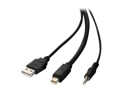 Câble vidéo / USB / audio - USB, jack mini, Mini DisplayPort (M) pour USB type B, jack mini, DisplayPort (M) - 3.05 m - passif, support 4K - noir