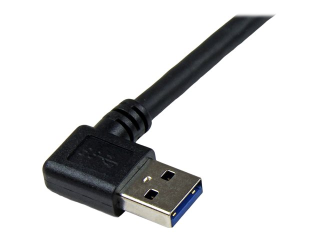 Le câble noir USB 3.0 A vers B 1 m USB3SAB1MRA comprend un connecteur mâle USB A à angle droit, vous permettant de connecter vos périphériques USB 3.0 B à votre ordinateur de bureau, ordinateur portable ou serveur, même dans les espaces réduits et difficiles d'accès.