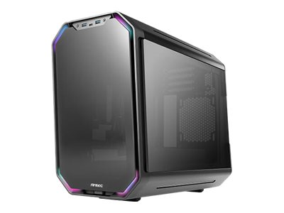 Description du produit Antec Dark Cube - cube moyen - micro ATX Type de Produit Armoire système Format Cube moyen Panneau latéral vitré Oui, verre trempé Connecteurs E/S 1 x microphone