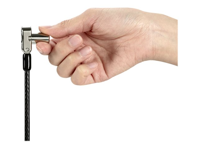 Description du produit Kensington Universel Serrure à clé pour ordinateur portable 3 en 1 - câble de sécurité Type de produit Câble de sécurité Matériau du produit Acier au carbone Longueur 1.8 m Caractéristiques Passe-partout, broche cachée, avec attache, pivotant, 5mm Keying System, réglage en rotation, Register & Retrieve Garantie du fabricant Garantie de 5 ans -