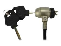 Antivol double à encoche pour les ordinateurs portables possédant une encoche de sécurité. Egalement utilisable avec les écrans plats ayant une encoche prévue à l'arrière. Il est constitué d'un câble de 1,80m sur lequel peut coulisser un autre câble de 0.4m afin de sécuriser deux matériels.