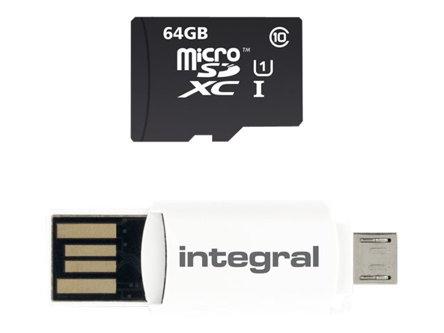 Description du produit Integral Smartphone and Tablet - carte mémoire flash - 64 Go - microSDXC UHS-I Type du Produit Carte mémoire flash Format Carte mémoire microSDXC UHS-I Capacité de stockage 64 Go Indice de vitesse Class 10 Garantie du fabricant Garantie de 5 ans -