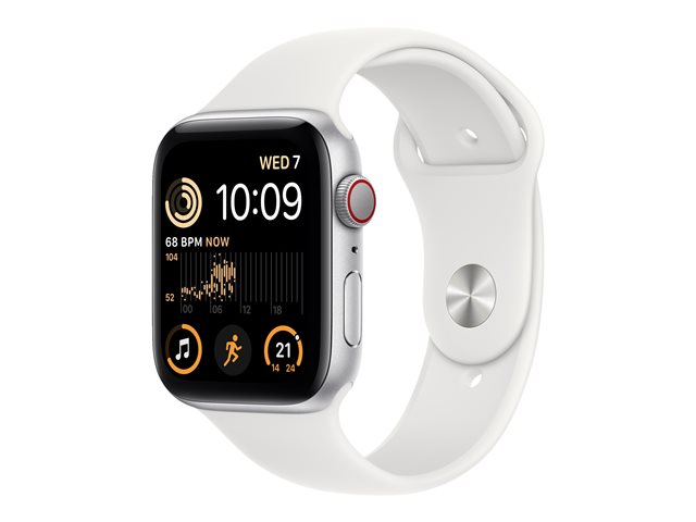 2e génération - 44 mm - aluminium argenté - montre intelligente avec bande sport - fluoroélastomère - blanc - taille du bracelet : Normal - 32 Go - Wi-Fi, LTE, Bluetooth - 4G - 32.9 g