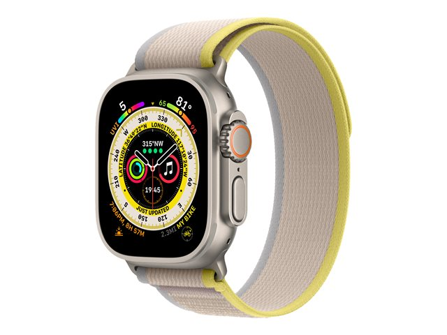 titane - montre intelligente avec Boucle Trail - deux couches de matières textiles tissées - jaune/beige - taille du bracelet : S/M - 32 Go - Wi-Fi, LTE, UWB, Bluetooth - 4G - 61.3 g