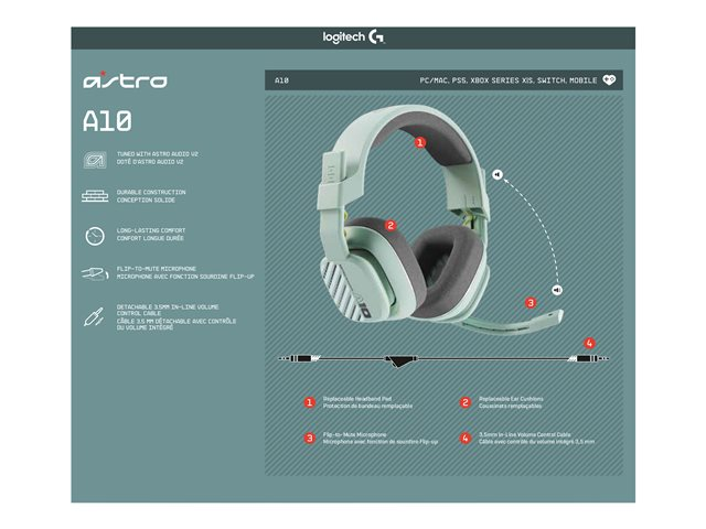 Améliorez votre configuration de gaming habituelle avec le casque ASTRO A10 2ème génération pour PC. Un son explosif grâce aux transducteurs dynamiques de 32 mm, un micro à tige avec fonction de sourdine Flip-up et une conception durable avec des coussinets et une protection de bandeau amovibles pour une expérience audio inoubliable. Plus besoin de s'inquiéter des coussinets ou d'acheter un autre casque dès les premiers signes d'usure. Préparez-vous à des sessions de gaming jusqu'au bout de la nuit grâce à l'egonomie de l'A10 2ème génération son design en charge close, sa construction ultra-durable et son arceau confortable : il durera bien plus longtemps que votre bon vieux casque! Réglez le son sans quitter votre siège, grâce au réglage du volume intégré, ainsi, vous ne manquerez jamais une seconde d'action.