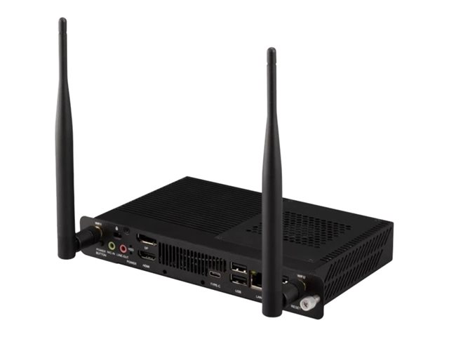 Description du produit ViewSonic VPC25-W33-O1-1B Slot-in PC - lecteur d'affichage numérique à encastrer Type de périphérique Lecteur d'affichage numérique à encastrer Dimensions (LxPxH) 20.2 cm x 11.9 cm x 3 cm Processeur Intel Core i5 i5-10400T 2 GHz 6 cœurs x 1 RAM 8 Go - DDR4 SDRAM Graphique Intel UHD Graphics 630 Disque dur 256 Go Interfaces USB 2.0, Gigabit Ethernet, USB 3.0, HDMI, USB-C, DisplayPort, Wi-Fi, Bluetooth 5.2 Système d'exploitation fourni Édition Windows 10 Pro 64 bits Accessoires inclus 2 vis Garantie du fabricant 1 an de garantie -