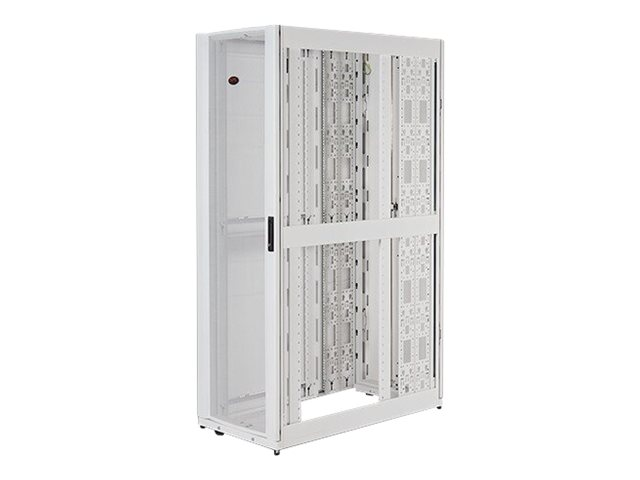 Armoires informatiques riches en fonctionnalités optimisées pour l'architecture en rangées InfraStruxure, la gestion des câbles, la distribution d'alimentation ainsi qu'une circulation d'air optimale.