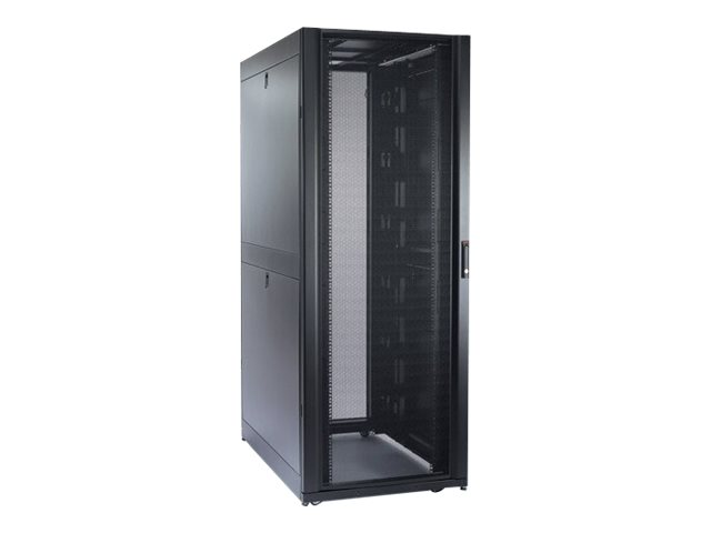 Armoires informatiques riches en fonctionnalités optimisées pour l'architecture en rangées InfraStruxure, la gestion des câbles, la distribution d'alimentation ainsi qu'une circulation d'air optimale.