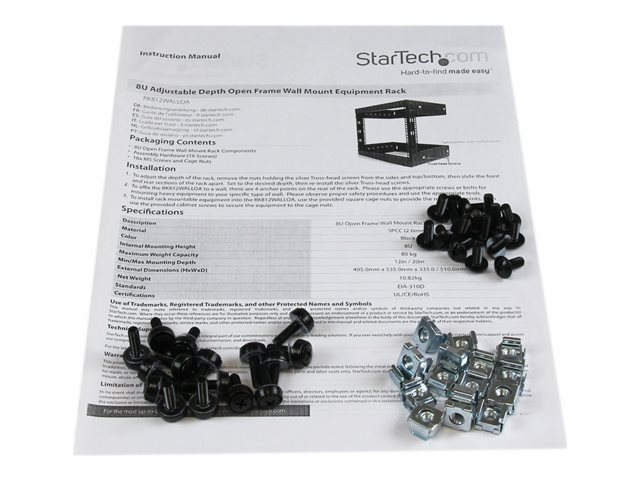 12" Deep 2 Post Open Frame Server Room Rack for Data/AV/IT/Computer Equipment/Patch Panel with Cage Nuts & Screws 135lb Capacity, Black (RK812WALLO) - Rack - noir - 8U - 19" - pour P/N: CABCAGENUTS6, CABSCREWM52, CABSCREWSM6, CABSCRWM520, CABSCRWM620, CABSCRWS1224