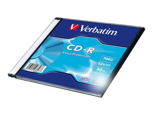 Description du produit Verbatim DataLife - CD-R x 1 - 700 Mo - support de stockage Type Support de stockage - CD-R Nombre de supports inclus 1 Capacité normale 700 Mo Durée de l'enregistrement 80 min Vitesse d'écriture 52x (maximum) Fonctions Surface de protection supplémentaire Type d'emballage Boîtier CD -