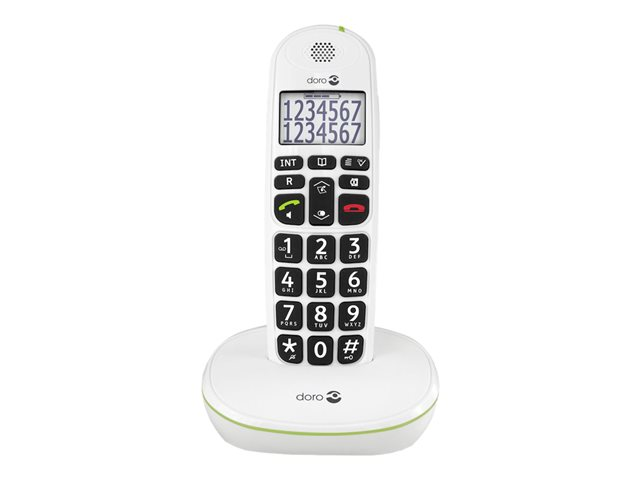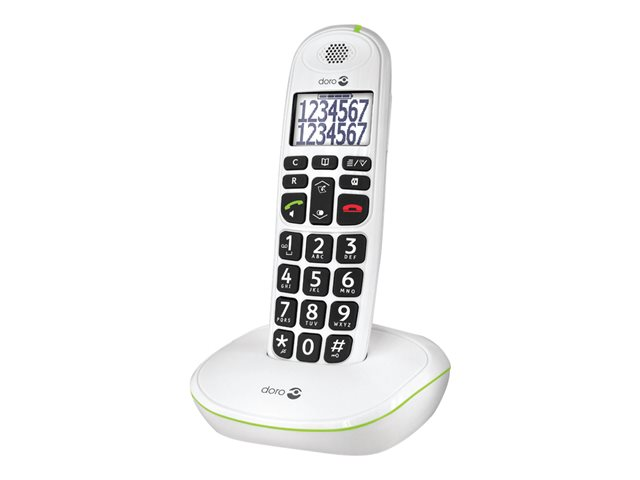 Le téléphone sans fil DECT Doro PhoneEasy 110 est très facile à lire. De plus, son écran rétro-éclairé hautement contrasté affiche les noms complets et les numéros sans devoir faire défiler l'écran. Les larges touches à retour vocal facilitent la numérotation tandis que le TrueSound de Doro offre un son clair de bonne qualité pour des conversations encore plus agréables. Il offre également un mains-libres au son puissant.